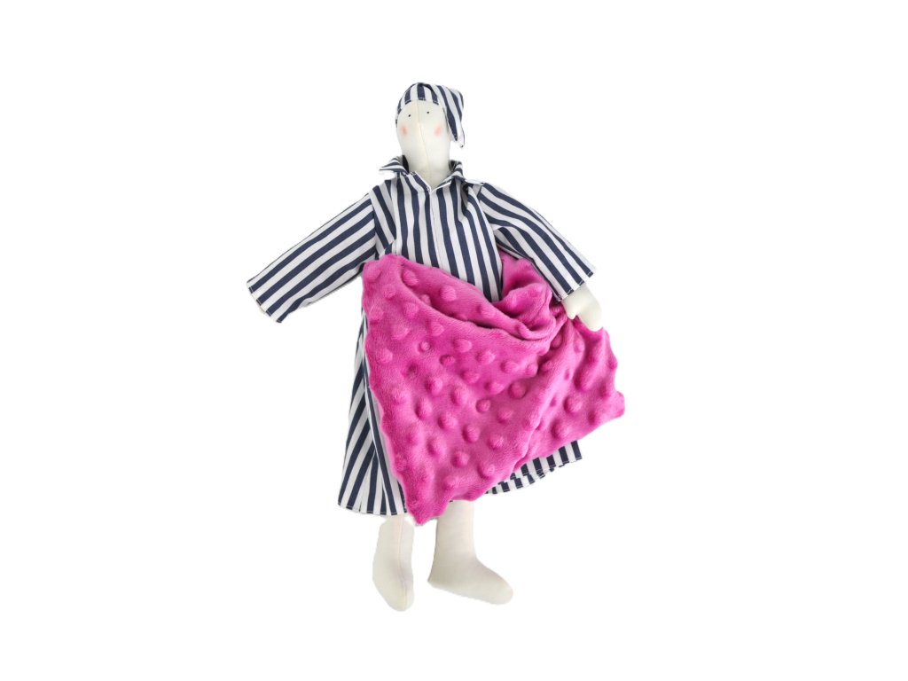 Kouzelný hajánek z naší krejčovské dílny, pečlivě ušitý s důrazem na detail. Postavička měří přibližně 35 cm a má na sobě noční košili s čepičkou.