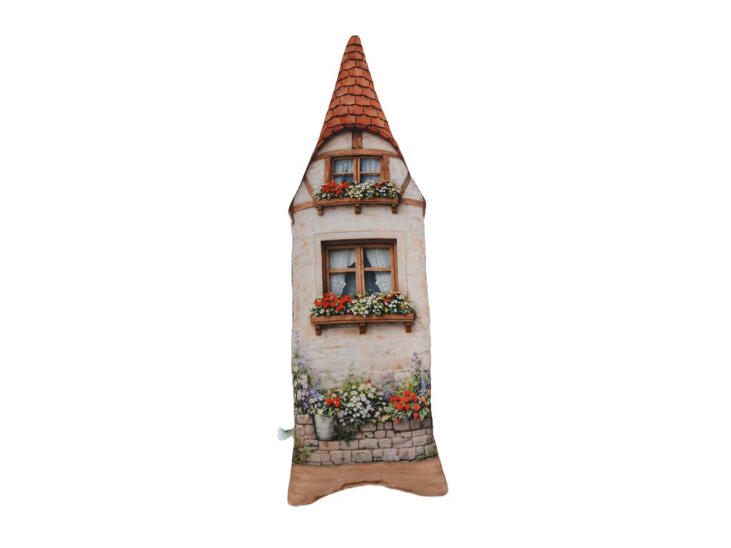 Měkoučký dekorační polštář s motivem domečku (60 cm) – Poctivá ruční práce