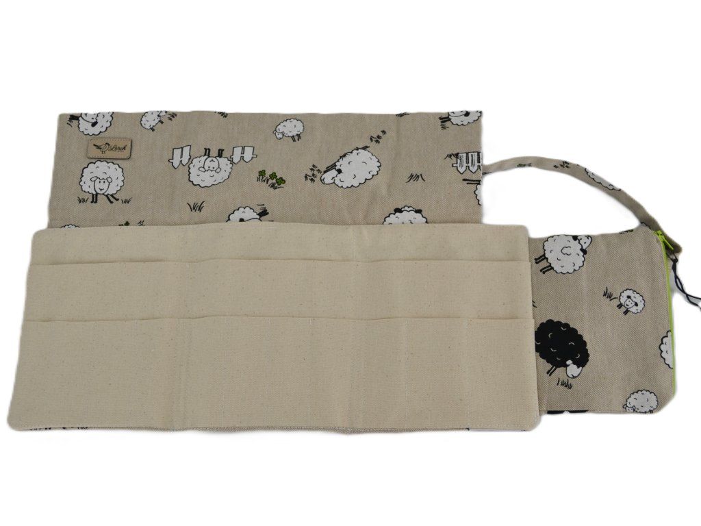- Poctivý materiál: Stejně jako naše projektové tašky, i toto pouzdro šijeme z pevného režného plátna. Je odolné, přírodní a díky podšívce dostatečně robustní, aby špičky jehlic látku jen tak nepropíchly.