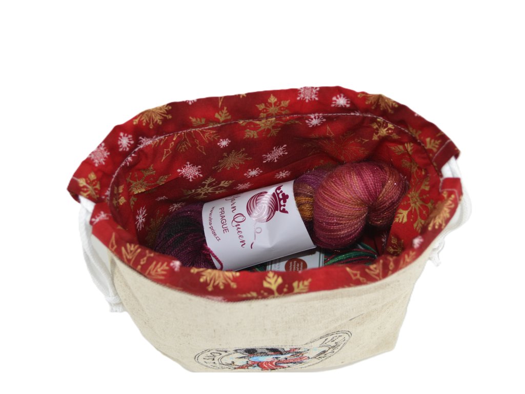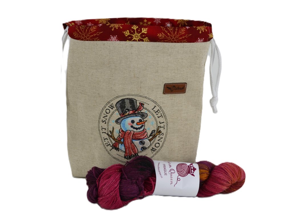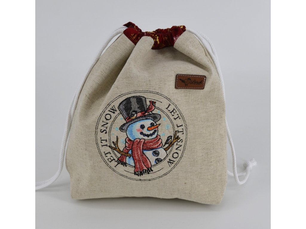 Projektová taštička ze lněného plátna – s výšivkou, podšívkou a stahováním na šňůrky