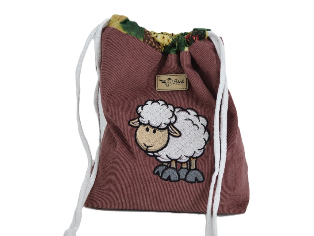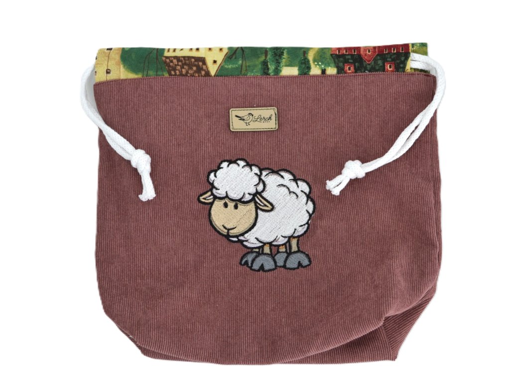 Projektová taštička z manžestru – s výšivkou, podšívkou a stahováním na šňůrky