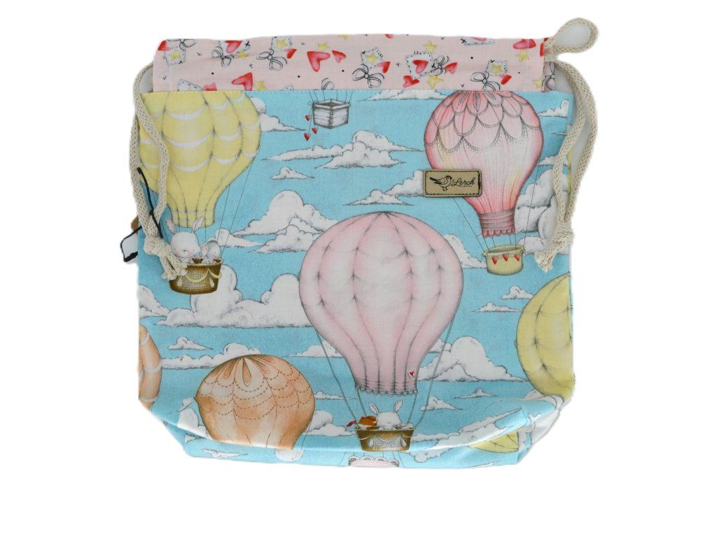Ručně šitá projektová taška z bavlny s potiskem – s podšívkou a stahováním na šňůrky