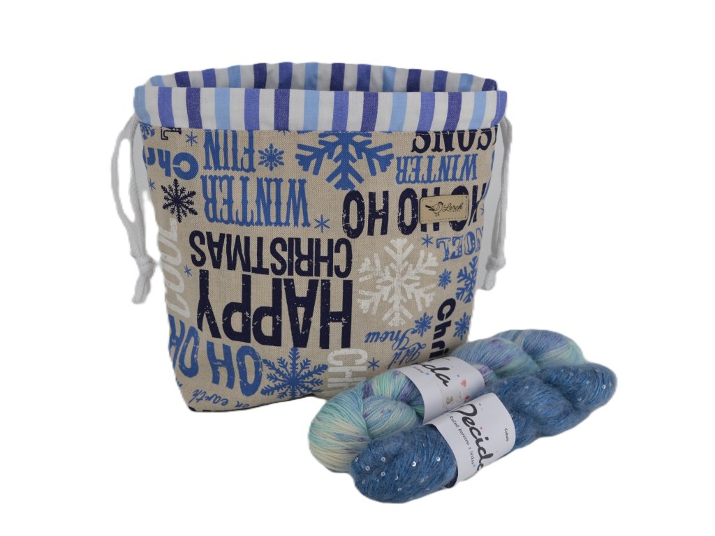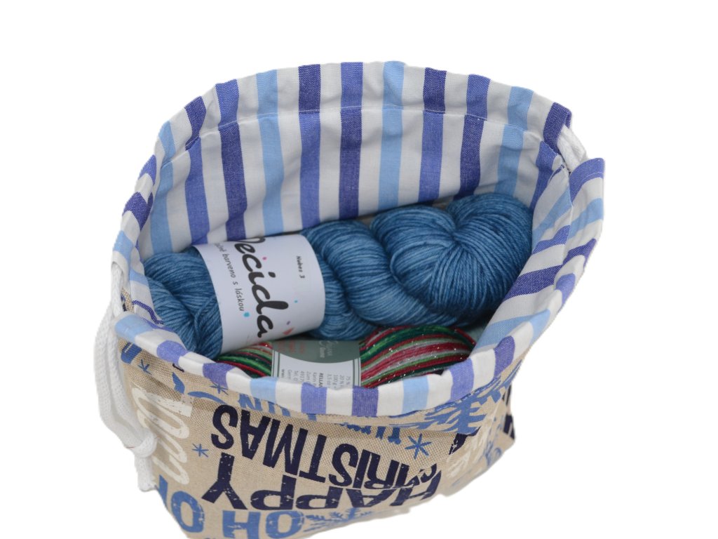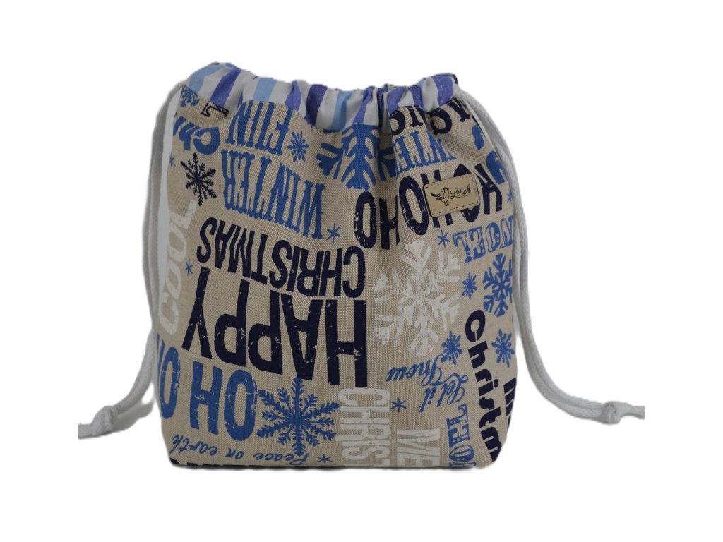 Ručně šitá projektová taška z bavlny s potiskem – s podšívkou a stahováním na šňůrky