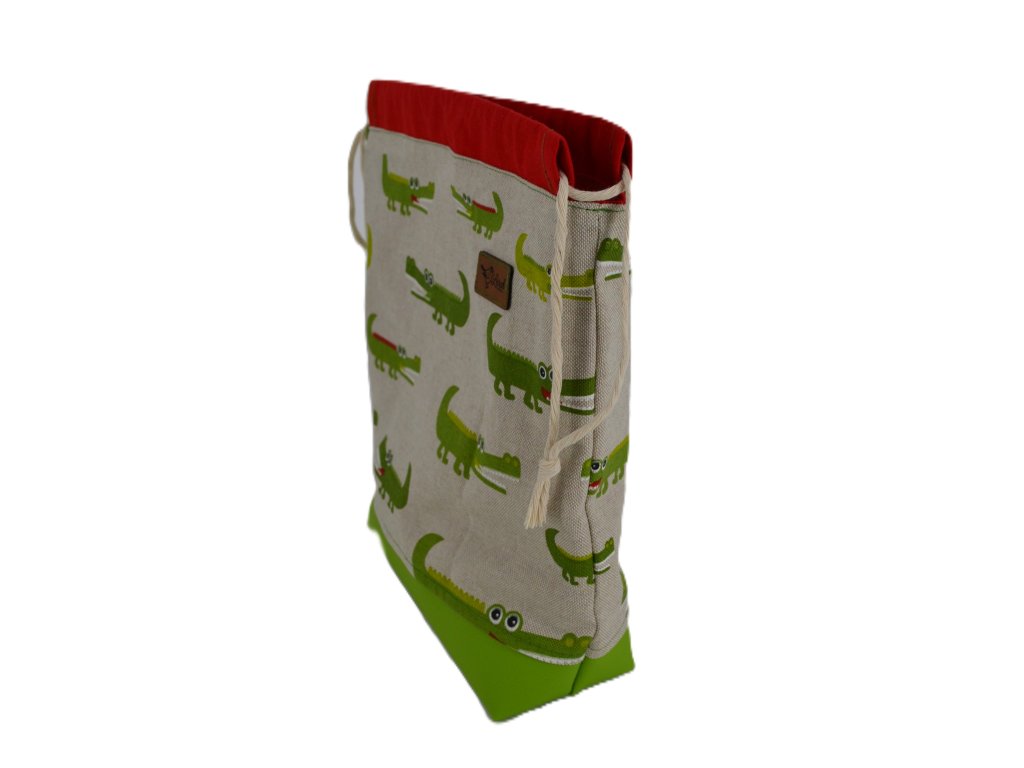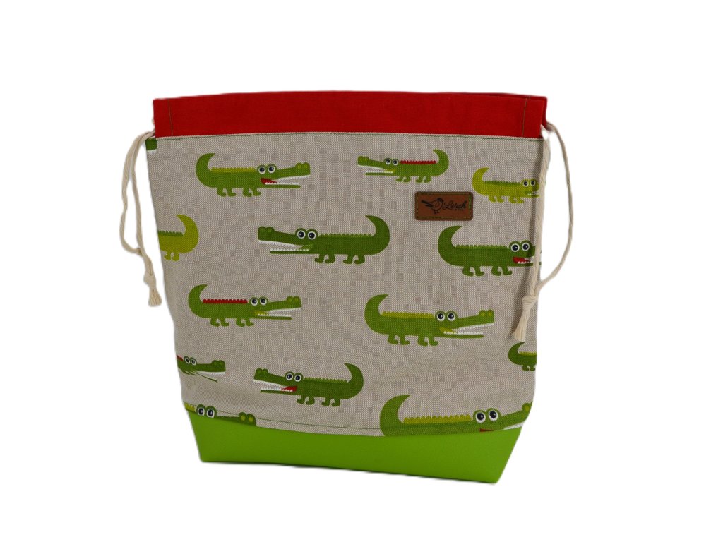 Materiál: 100% bavlna s potiskem (horní část) a kvalitní koženka (spodní část)